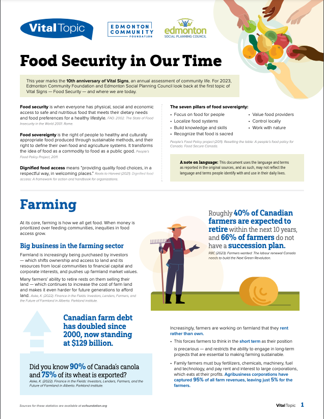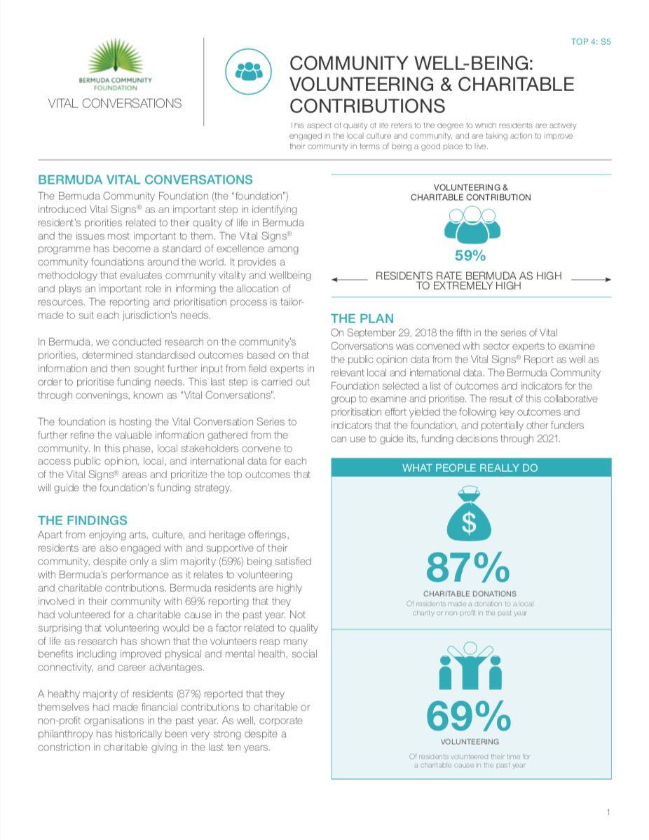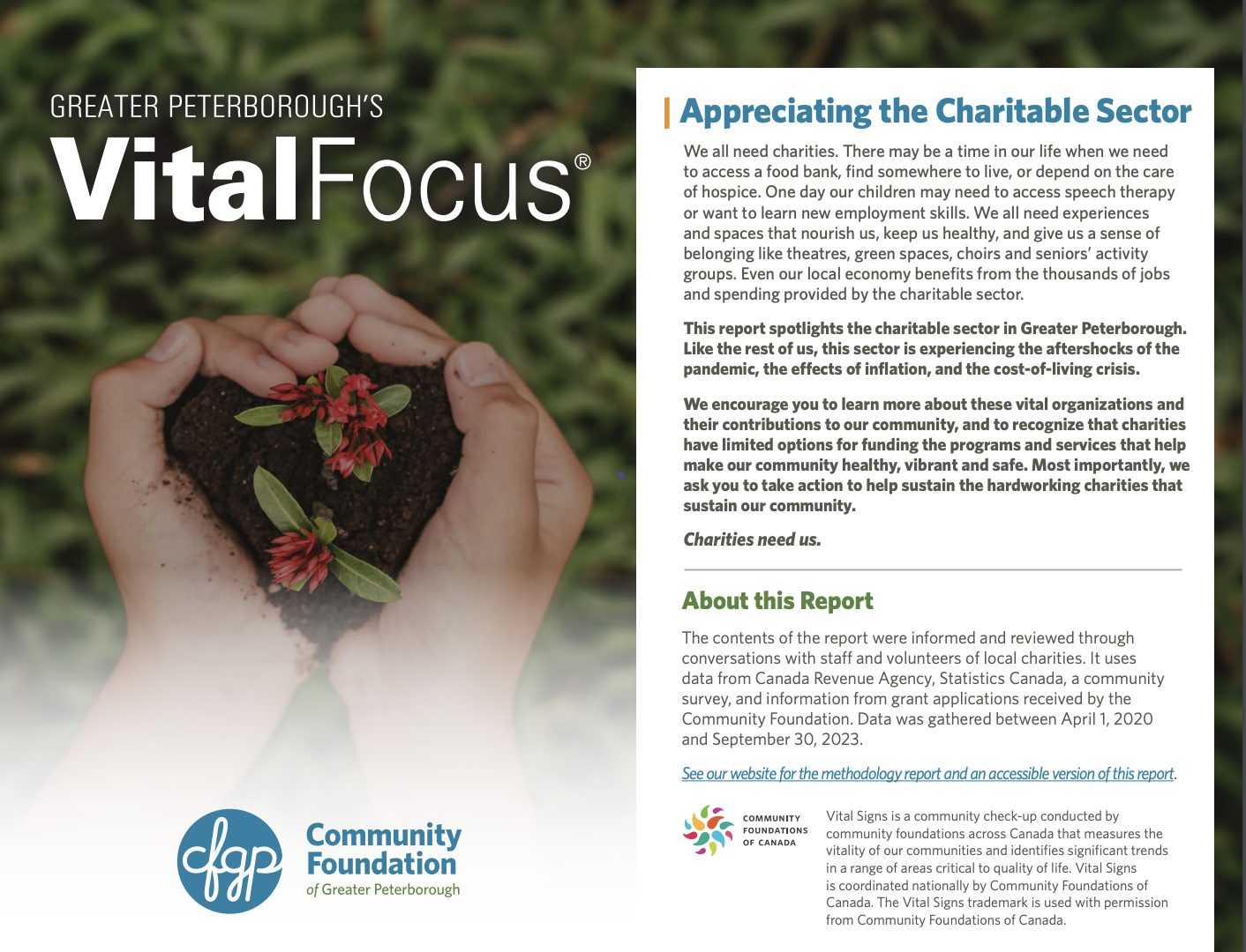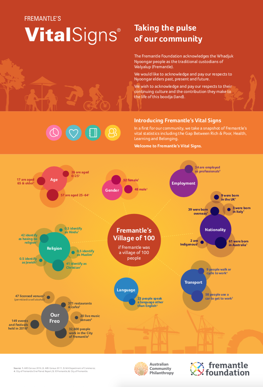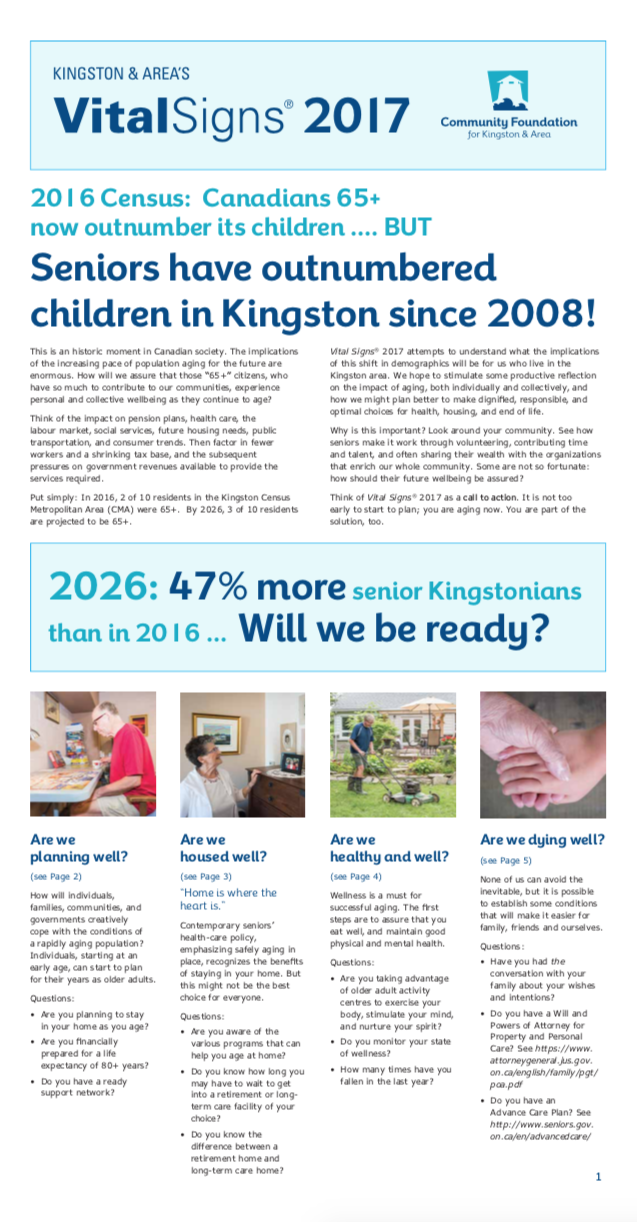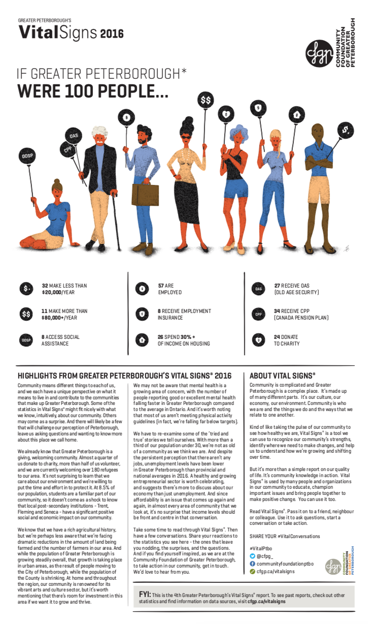 The Vital Signs program has a rich history at CFC, in communities across the country and around the world. Past community reports provide important historical data for many researchers, analysts and organizations. National reports have examined themes and trends as wide-ranging as food security, issues and barriers facing youth in Canada or how the arts and sports play a role in fostering a sense of belonging. Community and international reports examine vital community issues.